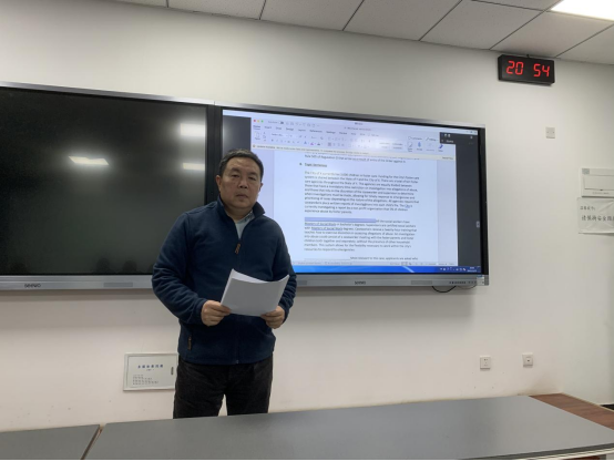 2023年11月22日晚,美国纽约大学亚当·杜宾教授通过腾讯会议平台对69堂 69堂 涉外班同学进行了题目为:模拟法庭优秀法律文书写作基础(续)的线上讲座,69堂 徐建平老师主持并翻译。