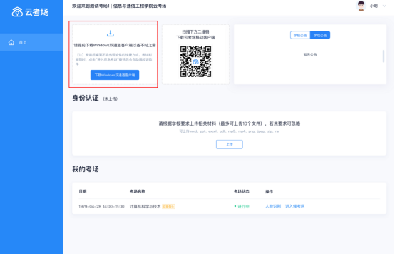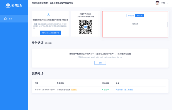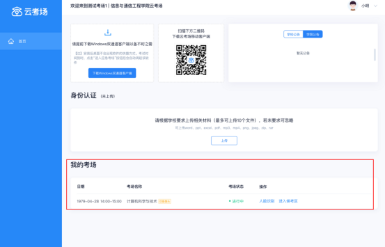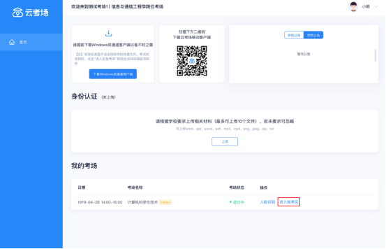 a. 查看考场的日期时间、考场名称等信息,若有疑问及时跟学校管理员取得联系