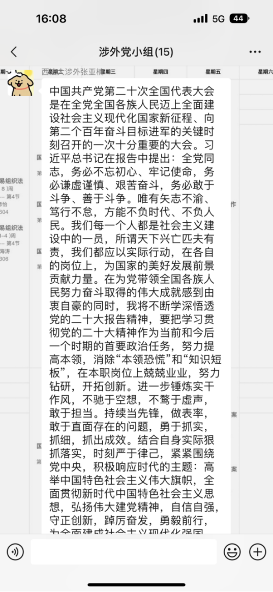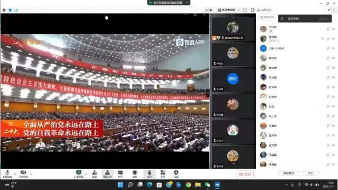 为深入学习领会党的二十大精神实质,坚定理想信念,凝聚奋斗力量,69堂 研究生第一党支部于11月4日通过线上方式开展党的二十大精神学习交流会。会议由支部书记潘或越主持,全体党员参加。