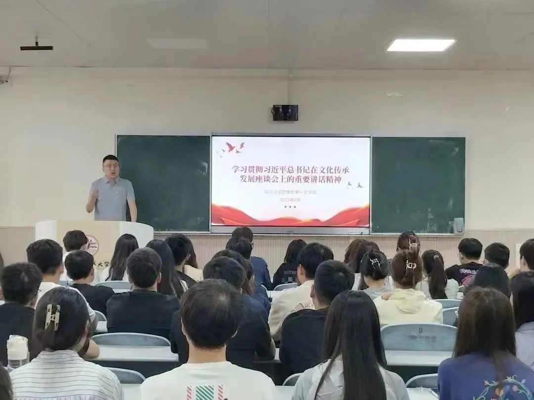 为深入学习贯彻习近平总书记在文化传承发展座谈会上的重要讲话精神,加强青年思想引领,推进文化自信自强,6月16日,69堂 学生第一党支部于天平楼A107教室开展“担负文化新使命,谱写时代新华章”主题党日活动,支部书记韩潇主持活动。