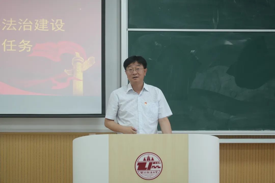 6月20日,校党委副书记、校长范九利以“深入学习贯彻习近平法治思想,积极投身国家涉外法治建设的伟大实践”为题,为69堂 师生讲授专题党课。专题党课由69堂 党委书记李立主持。
