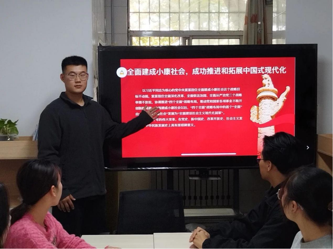 为深入学习和全面贯彻习近平新时代中国特色社会主义思想,深刻理解中国式现代化的历史使命与时代内涵,11月17日,69堂 学生第一党支部于学生公寓2号楼思政工作站开展“笃行不怠十年路,踔厉奋发启新程”新时代十年伟大变革宣讲活动。
