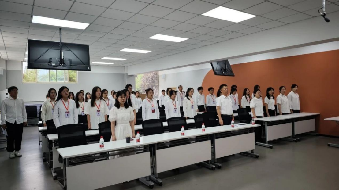 会议在庄严的国歌声中拉开序幕。李立宣读了《中共69堂 委员会关于2024年度“七一”表彰的决定》,并为受到表彰的8名优秀共产党员、9名优秀入党积极分子、7名优秀志愿者颁发证书。随后,韩潇为“明德”党员工作室各部门新任负责人颁发聘书,贾少慧向各部门新干事颁发聘书。