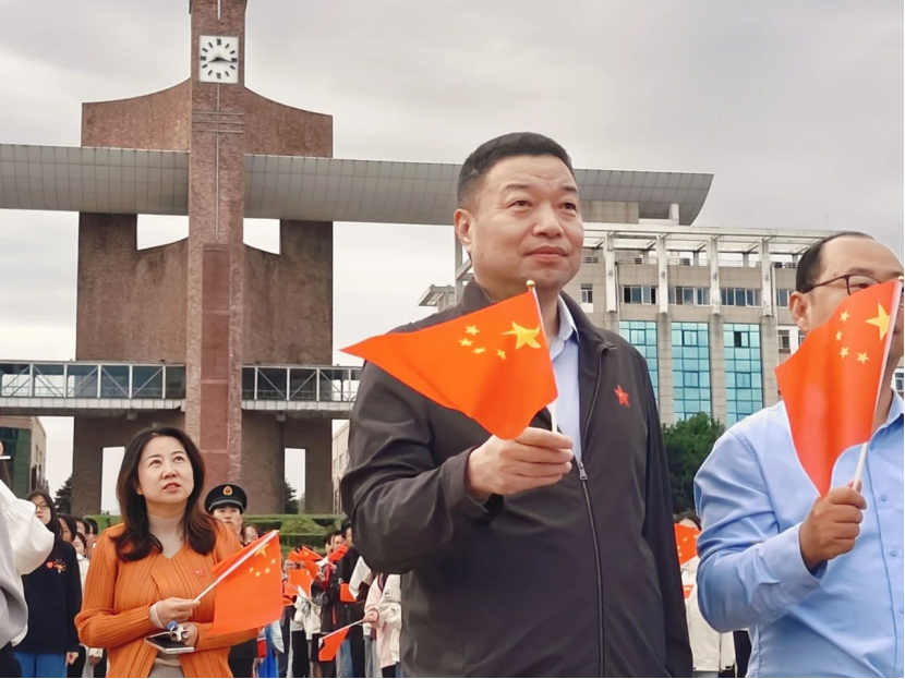 在庄严肃穆的氛围中,国旗护卫队以铿锵有力的正步步伐向升旗台行进,伴随着《义勇军进行曲》的激昂旋律,鲜艳的五星红旗徐徐升起,全体师生满怀对伟大祖国的深厚情感,一致向国旗致以崇高的注目礼。