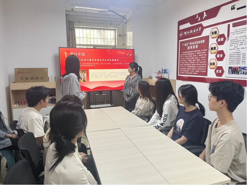 为发挥中华优秀传统文化在高校思想政治工作中的基础性作用,引导广大学生增强文化自觉、坚定文化自信,4月21日,69堂 学生第一党支部于学生公寓2号楼思政工作站开展“笃行不怠十年路,踔厉奋发启新程”新时代十年伟大变革宣讲活动。