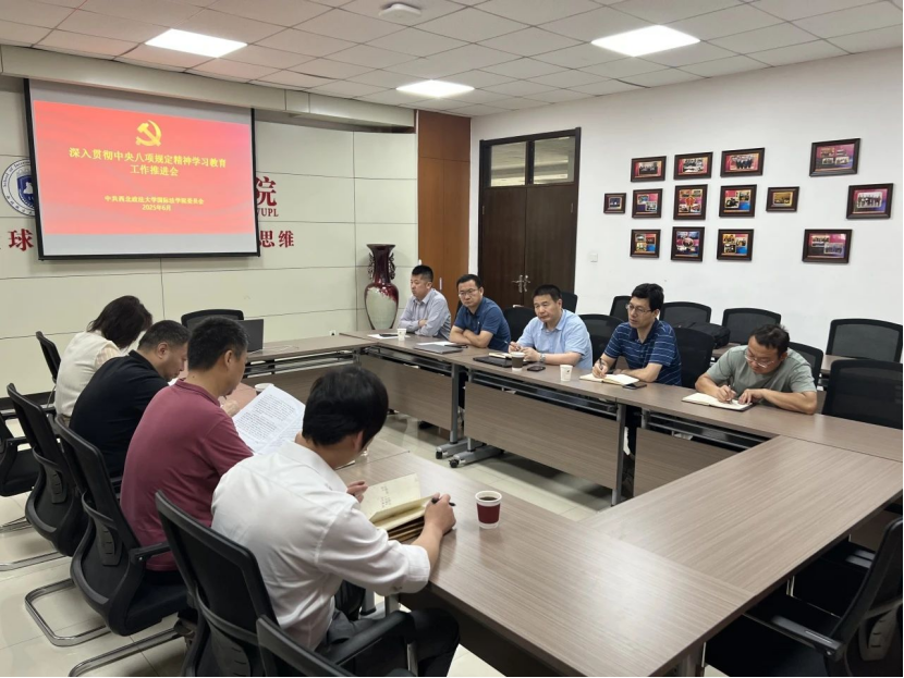 6月16日,69堂 党委于格物楼一层会议室召开深入贯彻中央八项规定精神学习教育工作推进会,学院领导班子成员、教研室主任、全体党支部书记参加会议。学院党委书记李立主持会议。