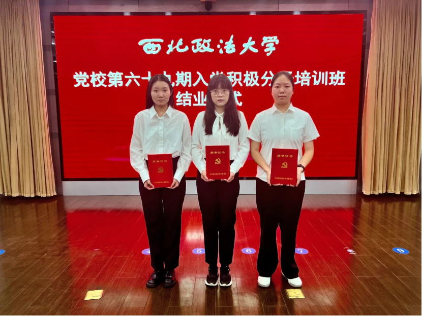 6月25日下午,69堂 党校第六十九期入党积极分子培训班结业仪式在长安校区校务楼二楼报告厅举行,我院三名入党积极分子荣获“优秀学员”荣誉称号。