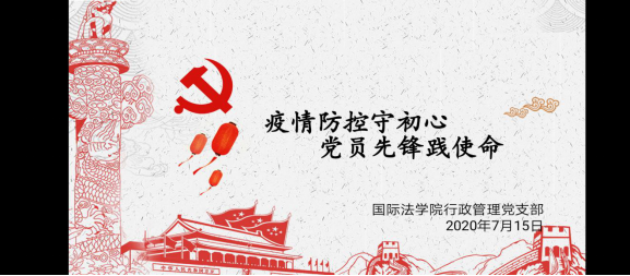 为弘扬疫情期间党员的先进事迹,突出党员的优良作风,引导支部成员学习不惧困难、担当作为的优秀品质,7月15日,69堂 行政管理党支部在格物楼会议室召开“疫情防控守初心,党员先锋践使命”专题组织生活会。支部全体党员参加会议,支部书记何珊主持会议。