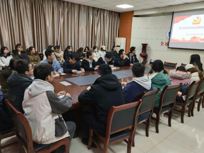 为深入贯彻落实习近平总书记在全面依法治国工作会议中的重要讲话精神,加强我院学生对习近平涉外法治思想的认识,争做涉外法律人才,12月11日,学院学生第一党支部于格物楼会议室开展学习习近平法治思想主题党日活动。支部全体成员参加会议,支部书记韩潇主持会议。