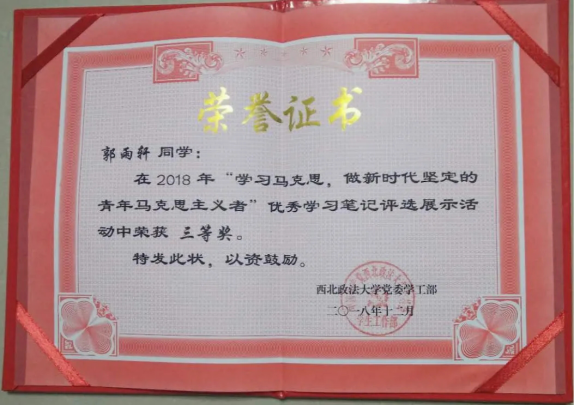 2018年“学习马克思,做新时代坚定的青年马克思主义者”优秀学习笔记三等奖