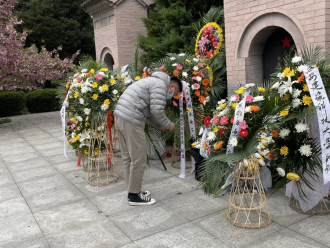 活动伊始,支部书记张一帆带领党员在纪念碑前庄严肃立,垂首默哀,敬献花篮,鞠躬致敬。随后,支部成员通过墓碑文字记载,追思先烈事迹,缅怀英烈崇高精神,向英勇献身的革命先烈默哀,并致以最崇高的敬意。