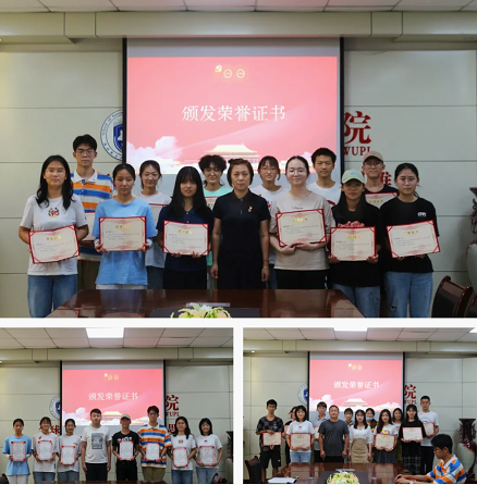 党委副书记王聪宣读了“七一”表彰决定。张钰婧等19名同志荣获“优秀共产党员”荣誉称号,王思怡等10名同志荣获“优秀入党积极分子”荣誉称号,参会老师为他们逐一颁发荣誉证书。随后,韩潇为“明德”党员工作室鲁源昌等15名新任干事颁发聘书。