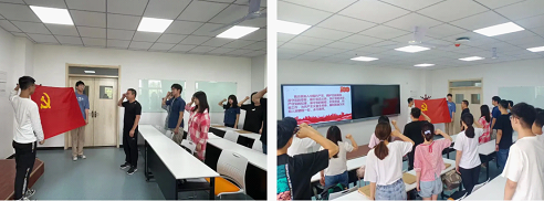 习近平总书记的讲话带领全体中国共产党员回顾中国共产党百年奋斗的光辉历程,展望中华民族伟大复兴的光明前景,全面深刻,振奋人心。大家纷纷表示,没有共产党就没有新中国,老一辈革命家为祖国和民族建立的丰功伟绩将永载史册,他们的崇高精神将被永远铭记在人民心中。作为新时代的中国青年,要以实现中华民族伟大复兴为己任,不负党和人民的殷切期望,以实际行动践行请党放心、强国有我的铮铮誓言。最后,全体党员面向党旗,举起右拳,重温入党誓词,体悟党的赤诚初心,明确自身使命担当。