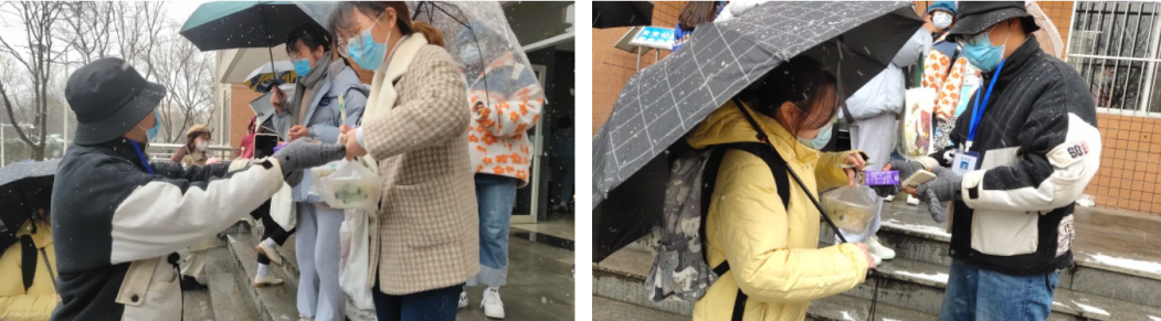 经过认真安排与严密防护,本次活动顺利开展。志愿者们胸前别着党徽,肩上佩戴袖章,一丝不苟做好疫情防控相关工作,将一份份爱心午餐送给了考研学子们手中,通过科学调配、系统分工,工作成效显著,有效避免了食堂人员聚集风险,助推学院常态化疫情防控工作开展,用实际行动践行了“奉献、友爱、互助”的志愿精神。