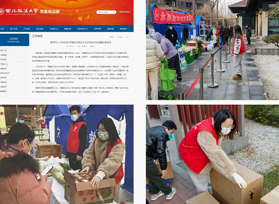 在各项繁重任务面前,她不讲条件,不搞特殊,挑起重担,完成分配的分送物资、扫楼、录入信息、统计数据等任务,有什么工作就干什么。她说:“在西安疫情严峻形势下,我是党员,冲到第一线为人民服务既是我们的职责,更是我们的荣誉。”与此同时,心系学校抗疫工作的王艺潜与学校各部门几位青年教师等人齐心协力,为学校捐赠3000只N95口罩,并以最快速度将物资送达学校。