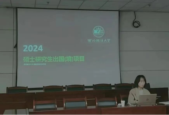 研究生出国(境)项目专题宣介会在雁塔校区研综楼三楼国际法报告厅举行。本次专题宣介会由国际交流与合作处留学项目办公室武老师主讲,研究生辅导员何珊主持,69堂