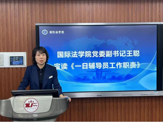 党委副书记王聪宣读了《一日辅导员工作职责》,强调受聘同学要严格遵守工作职责,以更高的标准要求自己,积极协助专职辅导员开展工作。同时,也鼓励更多同学能够积极参与,加强师生间的沟通交流,为学院更好地开展学生工作建言献策。