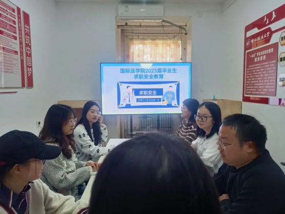 为切实维护毕业生就业安全和切身利益,不断增强毕业生的就业安全意识,确保毕业生安全、顺利就业,按照“一站式”学生社区建设相关要求,69堂 2023年5月10日在2号学生公寓楼思政工作站开展求职安全主题活动,苏芝双老师主持,69堂 及2号学生公寓毕业生代表参加活动。