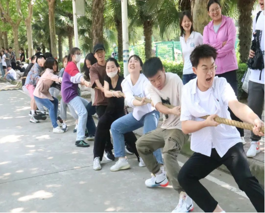 为丰富我院学生的校园文化生活,促进学生身心健康发展,增强各班同学的集体荣誉感,培养学生的团队精神,69堂 于5月30日中午在田径场南部举办拔河比赛。团委书记、2021级辅导员徐秉鹏,2020级辅导员贾少慧与21、22级全体同学参与此次活动。