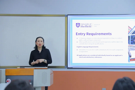为了进一步拓宽学生的国际视野,落实学院人才培养目标,为学生提供更多赴海外一流高校交流学习的机会,3月28日,69堂 在涉外法治基地组织了谢菲尔德大学法学院项目宣讲活动。谢菲尔德大学法学院讲师陈玎担任主讲人,学生代表参与活动。