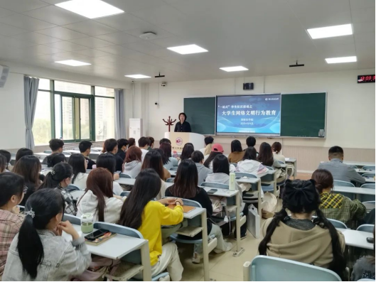 吴晓娟首先通过举例强调了践行网络文明的意义,她提出个人的行为与自己的前途命运息息相关,同学们要提高个体网络文明素养,规范自己的言行举止,同时个人行为也会对学校、国家名誉产生影响,大家要时刻将网络文明放在心上,不为国家和学校抹黑。随后,她表示作为大学生同学们应该自觉提升网络文明修养,坚守网络文明底线,提升对虚假网络信息的甄别能力,坚定信仰,独立思考,自觉抵制谣言。