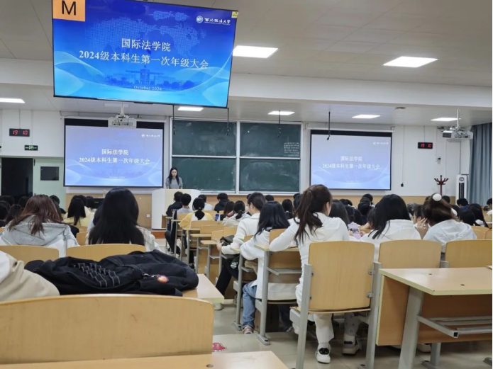为扎实做好新生入学教育工作,帮助同学们尽快适应大学生活,69堂 于10月7日晚19:00在天平楼AJ32教室举办了2024级第一次年级大会,2024级辅导员黄思齐主持,2024级全体本科生参加。