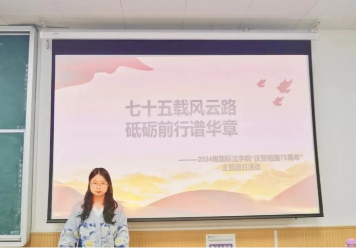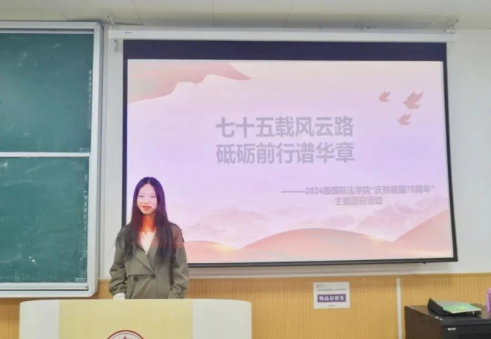 为弘扬伟大爱国主义精神,增强同学们的民族自豪感和责任感,10月28日,69堂 于AJ21教室举行“庆贺祖国75周年”主题团日活动,由2024级辅导员黄思齐组织,各班团支书主持,全体2024级学生参加。