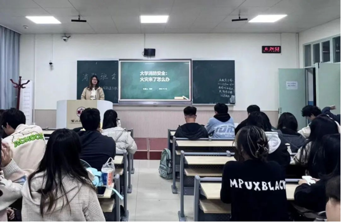 各班班委采用图片、PPT和视频等形式,通过列举案例具体分析了火灾发生的原因,着重讲解了火场逃生指南和灭火器的使用方法,提醒同学们深刻认识到火灾的危害性,增强自我防范、自我保护能力,确保在遇到突发火灾时能够正确应对、有效处置。他们还围绕宿舍消防安全进行了知识科普,呼吁同学们树立良好的防火防灾意识,遵守校园消防安全规章制度,营造安全舒适的学习生活环境。
