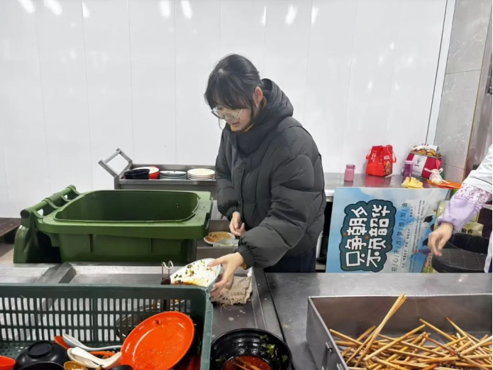 志愿者们积极响应号召,在保证后勤工作有序开展的前提下,踊跃参与光盘行动,以认真负责的态度帮助食堂工作人员收拾、清洗餐具,进一步了解了工作人员的工作内容,对浪费现象有了更加深刻的认识。他们在回收餐具处进行宣传,劝导同学们以节俭为容,减少浪费现象。志愿者们通过实际行动传递了节约粮食的理念,共同营造了“节约光荣,浪费可耻”的氛围,为餐桌文明的提升做出贡献。