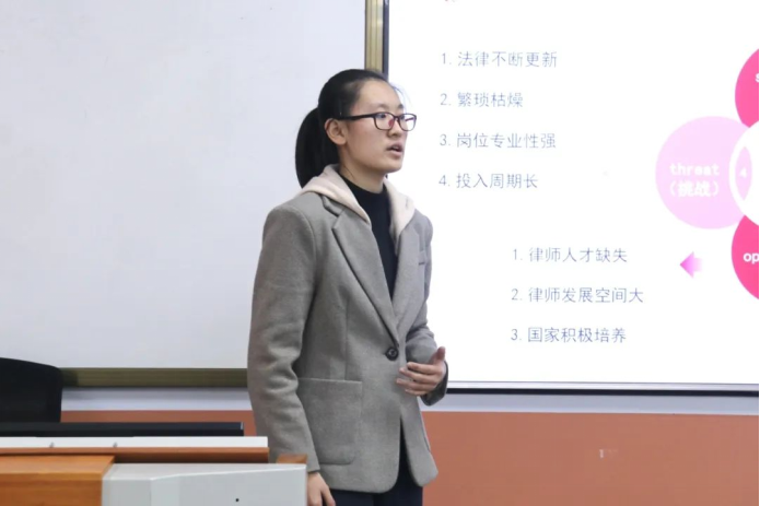 赛前,巫彩熠对本次比赛的目的与规则进行了深入的阐释,指出本次比赛分为研究生赛道、本科生赛道及成长赛道,旨在全方位、多维度地展现参赛者的职业规划才华与风貌。研究生赛道的选手依托其丰富的实习积淀分享了他们在实践探索中积累的经验;本科赛道的选手们立足于当前的学习现状,通过个人职业评估与调整展现了他们对未来职业道路的初步规划;成长赛道的选手们紧密围绕个人特质及对涉外律师的个人理解勾勒出他们心中的职业规划蓝图。