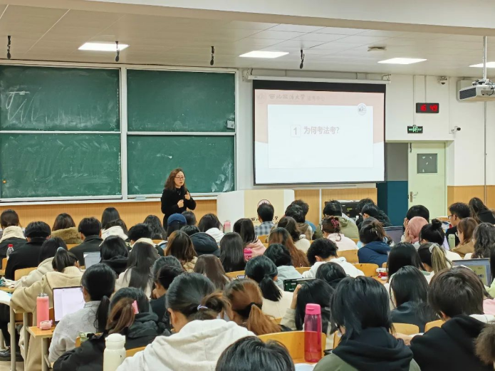 为激发同学们的学习热情和备考动力,深化对专业知识的理解,提振法考信心,11月20日,69堂 于天平楼BJ22教室开展法考专题讲座,69堂 法考中心赵彦红老师主讲,2022级本科生参加。