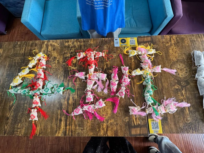 2024级5班举办了“缝香为礼,共度端阳”端午节特别活动,同学们深入探究节日起源,同时了解到香囊所蕴含的美好寓意。在材料分发后,同学们参照视频教学,动手裁剪布料、穿针引线、填充香料,造型各异的香囊陈列亮相,大家相互欣赏交流,承载祝福的香囊在欢声笑语中传递。