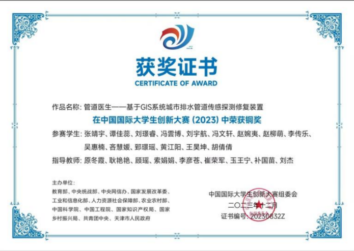 1、2023年中国国际大学生创新大赛(原第九届中国“互联网+”大学生创新创业大赛)国家级铜奖