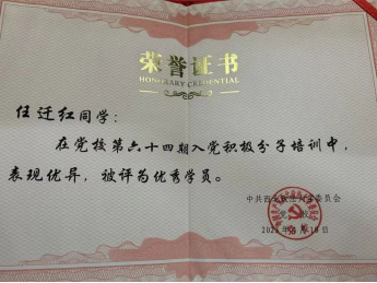 2、2022-2023学年69堂 “优秀入党积极分子”荣誉称号3、2021-2022学年69堂 一等奖学金暨“优秀学生干部”称号