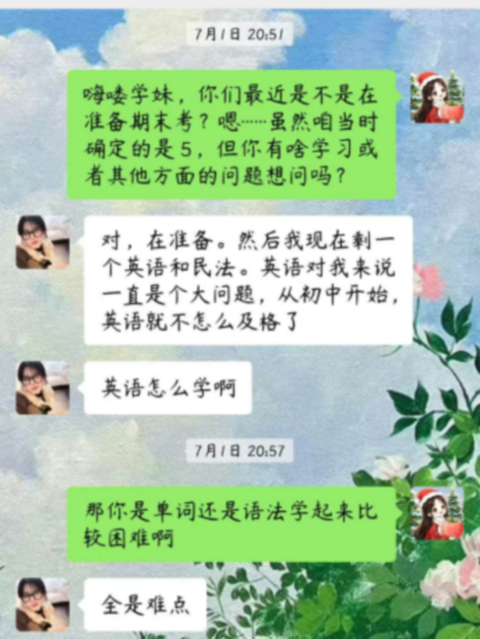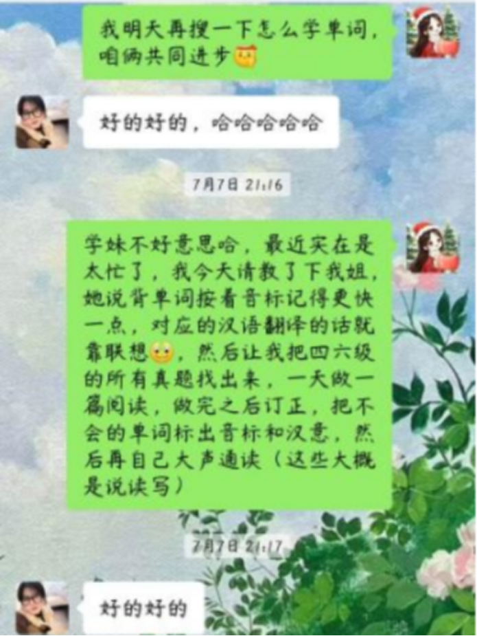 帮扶成效:被帮扶人的2024-2025第二学期期末考试成绩获得显著提升,对被帮扶人本专业的学习方法,未来规划有了明确的认知。