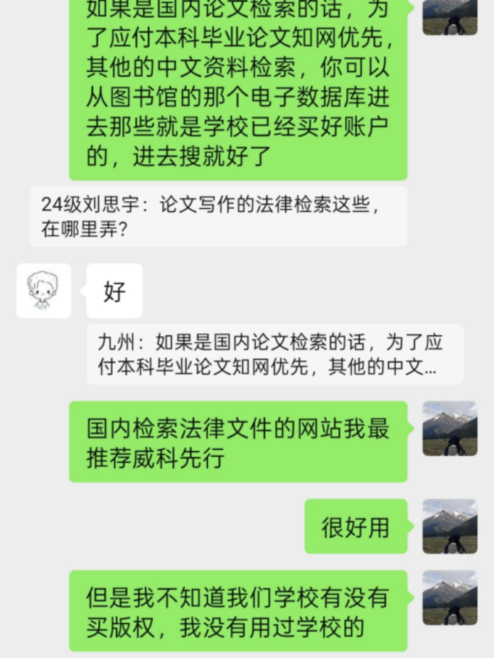 3.指导被帮扶学生的论文写作,包括法律数据库的检索、论文写作的信息收集、思路拓宽以及框架搭建。