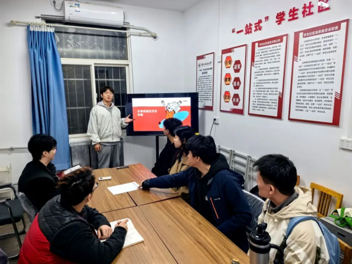 活动伊始,团支部书记赵英豪同学通过 PPT 演示,结合近期全国及周边地区流感疫情数据,详细讲解了流感的传播途径、典型症状及与普通感冒的区别,帮助同学们准确认识流感危害。从合理佩戴口罩、勤洗手消毒、保持室内通风、均衡饮食、适度运动等日常防护措施,到流感疫苗接种的适宜人群与注意事项,再到出现流感症状后的正确应对方法,都进行了细致讲解。活动结束后,团支部还组织了 “流感预防知识问答” 互动环节,同学们积极抢答,现场氛围热烈,进一步巩固了所学知识。
