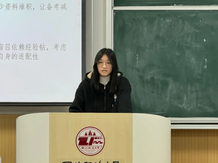 曾小妹则真诚分享了个人备考心得,建议大家理性选择备考资料、避免盲目囤积,并且要提前确认各项申报细节、规避流程风险,尤其要注重英语综合能力的长期提升。史佳怡通过思维导图的直观形式,详细介绍了个人陈述、获奖证书、成绩单等核心加分材料的打磨技巧,指导同学们精准对接申报条件,突出自身优势亮点。