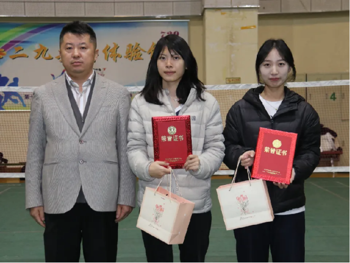 经过激烈的角逐,各项比赛均圆满结束。徐秉鹏为男单获胜者庄森笔、张轩玮,女单获胜者周毓玥、李欣然,男双获胜者赖政丞、邱仲磊,女双获胜者孙少荃、李彦磊颁发了奖品。赛后,双方选手彼此握手致意,进行了友好的交流并留下来彼此的合影。