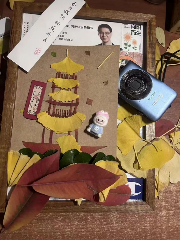为了让同学们深刻感受秋日之美、亲身体验动手乐趣,同时践行劳动育人的理念,69堂 研究生第一党支部于12月5日精心策划并举办了“一叶知秋”秋日心理沙龙活动。活动巧妙运用落叶作为天然素材,同学们通过多样化的形式生动展现了自己眼中的秋天,不仅丰富了校园生活,更提升了动手能力和审美素养。