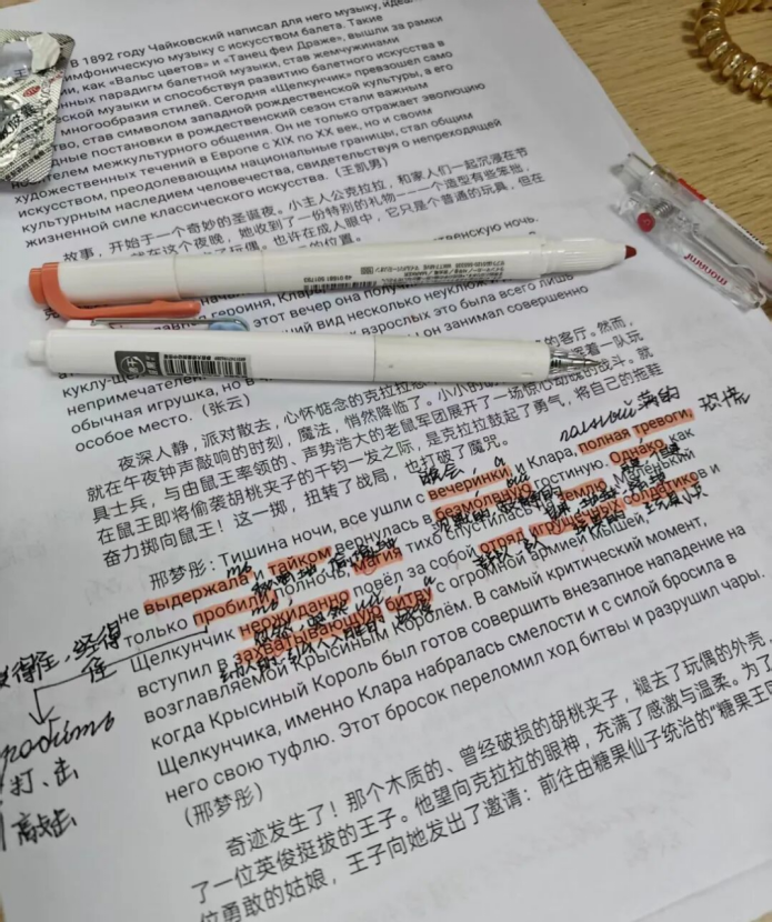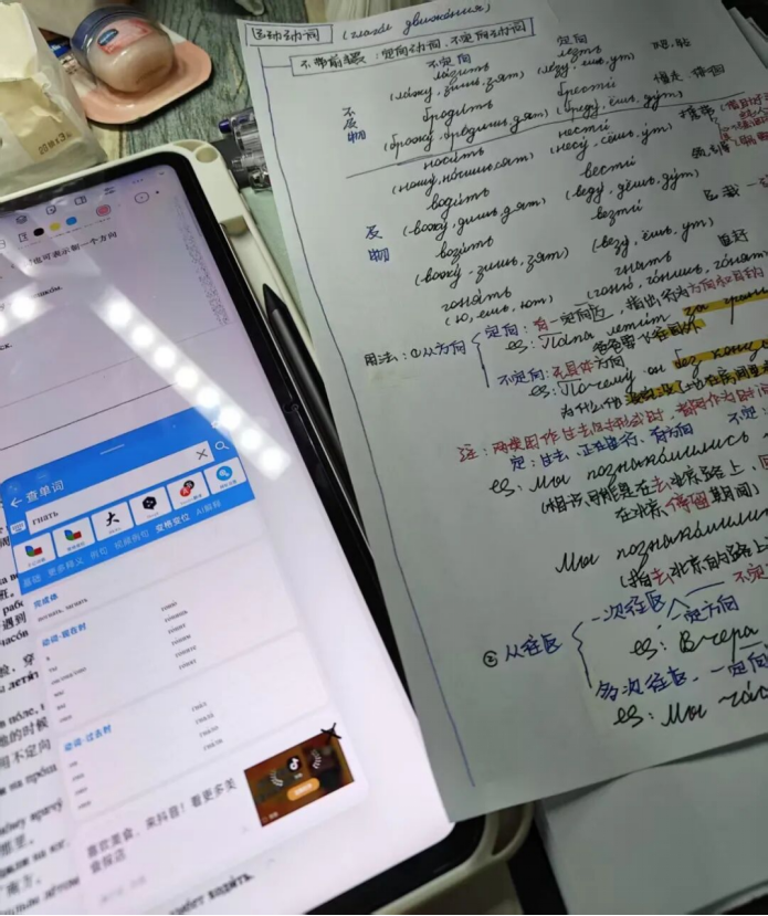 在学业层面,我通过积极担任俄语主播、制作俄语节目等方式保持学习热情,拓展课本知识,并参与模拟联合国等活动拓展实践机会。我积极整理精读笔记、梳理语法知识点,并参加了学院笔记大赛。我坚持认真整理笔记,将课堂ppt拍下进行批注,并课后进行梳理、背诵默写,确保知识能落在笔头。