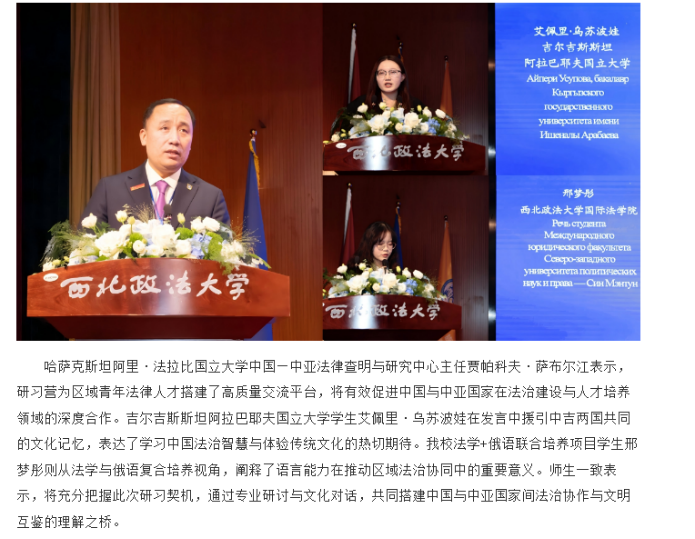 在竞赛实践方面,除中俄暑期交流营活动外,我还积极参与了合唱展演以及心理剧大赛等文体活动,分别获得了团体三等奖以及团体优秀奖。在中国国际大学生创新大赛中曾获得校赛铜奖。我积极在同辈经验交流分享活动分享自己的学习经验,并且在中国——中亚法律演习交流营中作为学生代表发言。