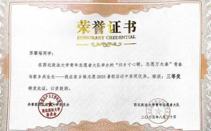 在专业知识上,我始终保持认真的学习态度,努力将专业知识以普法活动的形式反馈于社会。在大一学年,我参与过明德党员工作室志愿服务队组织的三一五普法、一四二普法、反家暴普法等志愿活动,参与过“法服”组织的七彩光法律服务中心暖心服务驿站值班活动,也参与过大学生返家乡活动并前往区司法局实践,这个过程不仅加深了我对专业知识的理解,更为我打开了一扇走进社会的门。