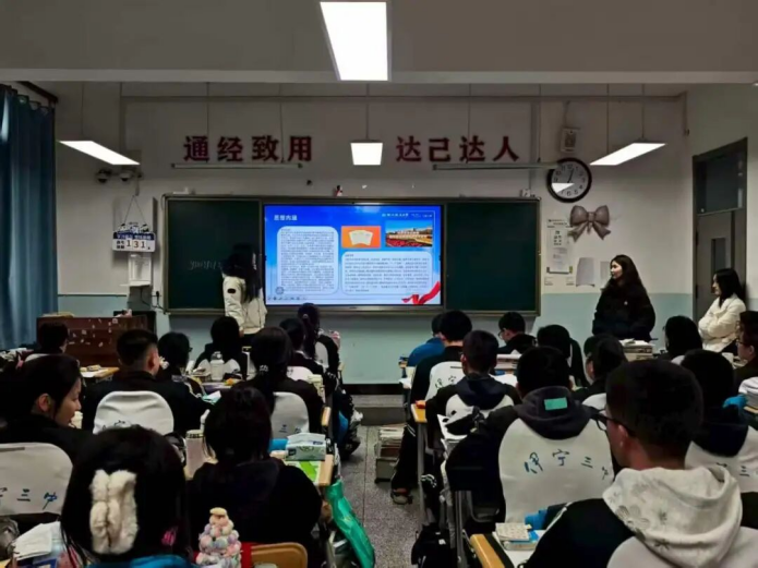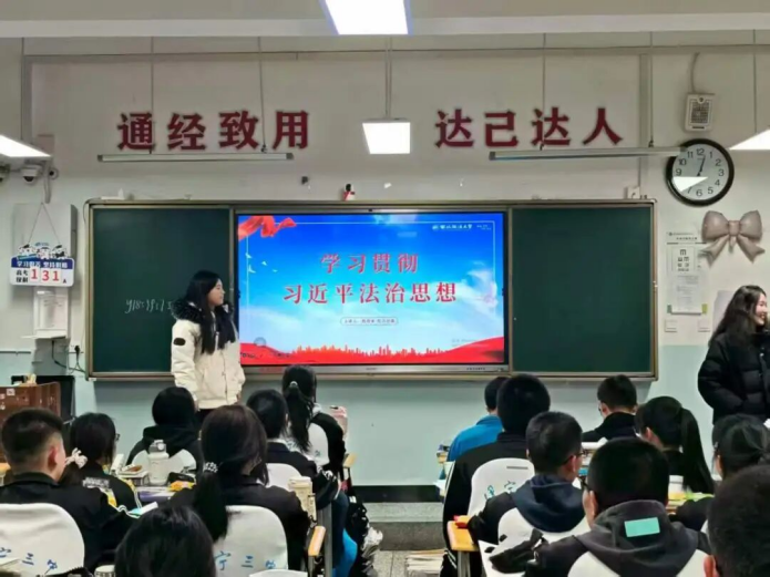 团队精心打磨宣讲内容,将习近平法治思想中“十一个坚持”的核心要义以贴近高中生认知的形式呈现。从“一带一路”法治合作,到边疆民族团结的法治保障;从校园欺凌的依法防治,到网络空间的权益守护,团队通过案例分析、微视频展示等多种形式,帮助青年进一步深化对法治社会的系统性认知。队员们还结合自身求学经历,热心解答大家关心的问题,并分享了实用的学习心得与未来发展规划建议。