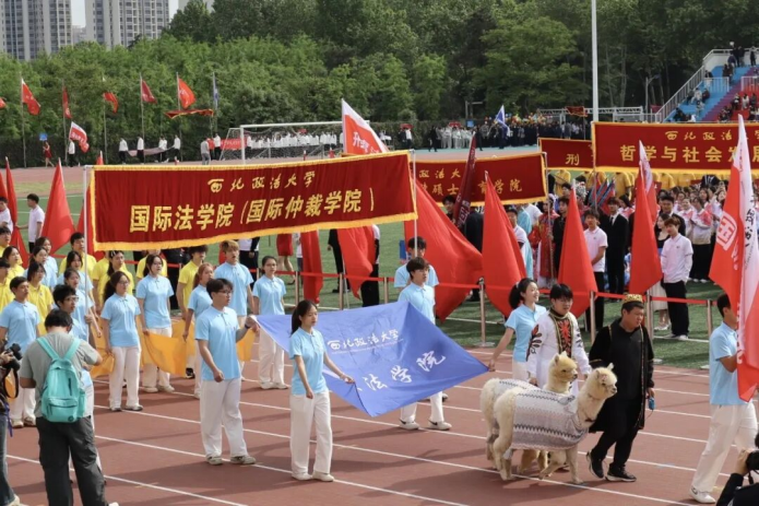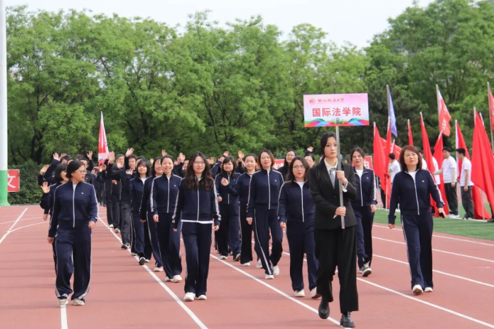 69堂 (国际仲裁学院)教师方阵更是展现出别样风采。平日里坚守三尺讲台、深耕专业领域的老师们,此刻卸下书卷气,换上利落运动装。他们步伐稳健矫健,神情自信从容,眉宇间满是奋进热忱,既彰显着教育工作者的儒雅风范,更传递出锐意进取、与青春同行的蓬勃朝气。