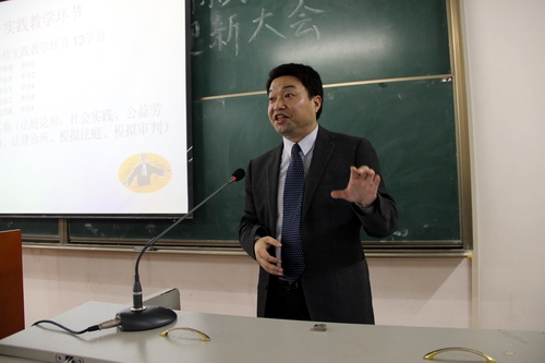 对外交流活动日益频繁。简短而殷切的语言增进了新生学习法学的信心,激励着新生进一步创造的决心。继而副院长刘亚军对“法学专业人才培养方案”做了简介,在法学人才培养目标、培养规格、培养方式等方面寓于更加深入的教导。接下来教师代表王秀梅教授就“坚持学习、怎么学习、参加多种活动去学习”三个方面对学习做了全面的引导。随后教师代表陈任副教授以自身经历指导大学新生如何去立志,并在“定位、打特色牌,学习方法,积累知识”给予借鉴。再接着是党委书记李燕对大学生以后人生提出了三点实际的建议:第一、要以成人,积极,独立的姿态适应生存;第二、通过实践锻造自己的性格;第三、打造完善健康的人格基础,创造美好未来。之后69堂