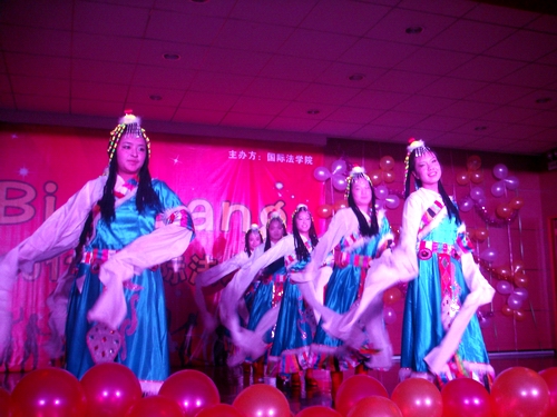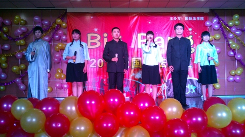 晚7点,伴随着晚会倒计时,晚会正式开始。随着现场灯光的明暗变换,精心编排的开场舞蹈《The boys》为晚会带来一个现代热情的开端。伴随着大家的掌声,四位主持人分别入场并致开场词。接着,由史家豪等两位同学表演的相声《大学那些事》使得大家捧腹大笑。 2011级同学为我们带来的安塞腰鼓,一只只腰鼓更是打响了国际法人的热情。动听的歌曲串烧《旅行的意义》、《传奇》、《I feel good》,将节目引入第二次高潮,话剧《爱情公寓》夸张精彩的表演和笑料不断的对白引得全场笑声阵阵,掌声不断。激情四射的舞蹈串烧《popping》和《街舞少年》让我们热血沸腾,舞蹈《吉祥谣—扎西措姆》让我们感受了不一样的民族特色。晚会的中间环节是书信祝福和微博互动,一封封书信传达的都是同学们的美好祝愿。同时,微博互动也精彩不断,很多兄弟院校和同学表示了对此次晚会的祝贺和称赞。紧接着,由贾雪娇,孙伟玲同学搞笑夸张的相声,也让我们明白了生活是五味杂陈的,幸福其实很简单。由大二学生带来的舞蹈《关中夯歌》演员们强劲有力的舞姿使整场晚会的气氛达到了高潮。话剧《I have a dream 》引人深思。歌舞串烧《夜夜夜夜》,《至少还有你》《赞哈》风格迥异,惊喜不断,慷慨激昂的朗诵《中华少年》,更是燃起了我们的爱国热情。古典与现代的有机结合将国际法之夜的热情和活力表现的淋漓尽致,高潮不断。