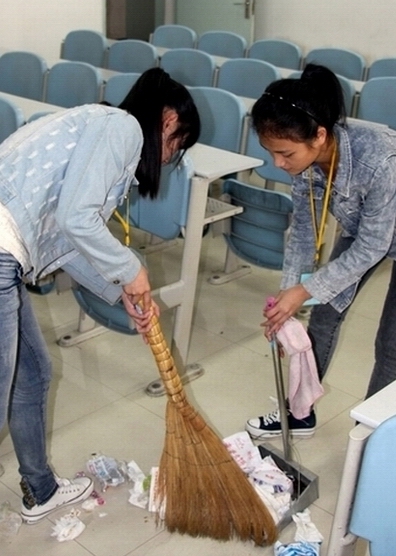 在光盘行动开展的同时,二号教学楼进行的清扫活动也在如火如荼开展。参与活动的同学纷纷表示,短短几天的清扫活动让他们体会到了劳动的艰辛,“我们能有一个干净整洁的学习环境,离不开他们付出的辛勤和汗水。”一位志愿者如是说。