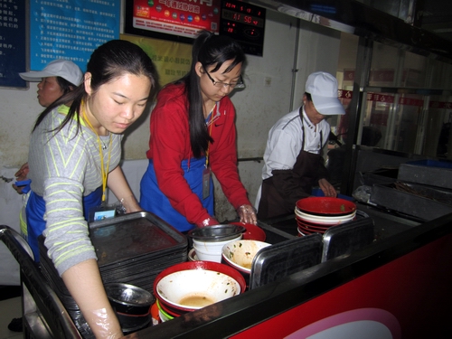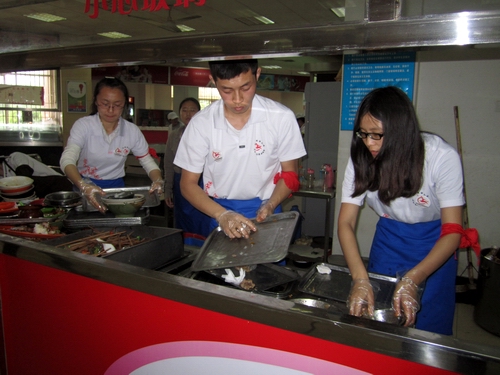 光盘行动是本次活动的主要内容之一,志愿者们协助食堂工作人员收餐盘,擦桌子,收拾杂物等。他们身着白色工作服,成为餐厅一道亮丽风景。每一个志愿者在工作时都面带微笑,他们朝气蓬勃,展现出积极为他人服务的态度与甘于奉献的精神。在短短几天的参与中,他们收获颇丰,一位志愿者说:“珍爱粮食,还要懂得尊重他人的劳动成果,这是很重要的做人准则”