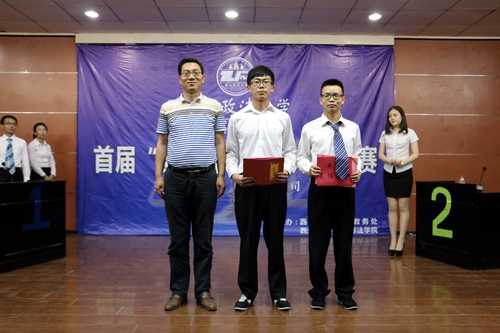 短暂的休息后,比赛开始了下半场个人赛的角逐。2号队的4名队员成功进入个人赛。经过前2个环节计时题和轮答题后,4位选手的比分咬得很紧,经过最后一个环节的风险题,本场比赛唯一的一位女选手王雪迪同学以165分的优势夺得冠军。莅临比赛的老师们为本场比赛获奖的选手及团体颁奖并合影。